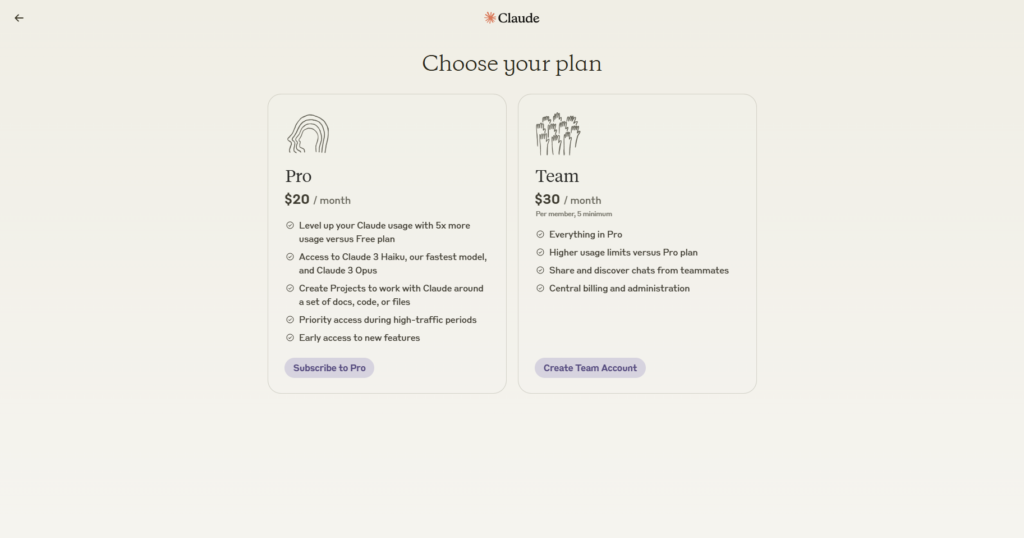 Claude 3.5 Sonnetには、無料版に加えて、2つの有料プランが用意されています。