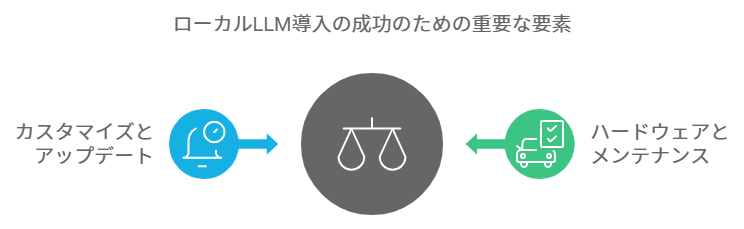ローカルLLMを成功させるためには、適切な技術の選び方、導入計画、そして継続的なサポート体制が欠かせません。特に、社内の人材と外部の専門家のバランスを取り、技術的な管理や更新に対する準備を整えることが、長期的な成功を支える鍵となります。