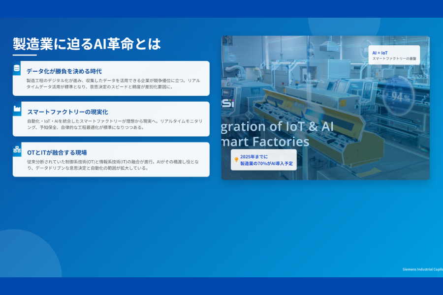 本記事では、シーメンスの先進的な取り組みを軸に、AIエージェントがもたらす革新の正体と、「今、動かなければ手遅れになる」その理由を明らかにします。