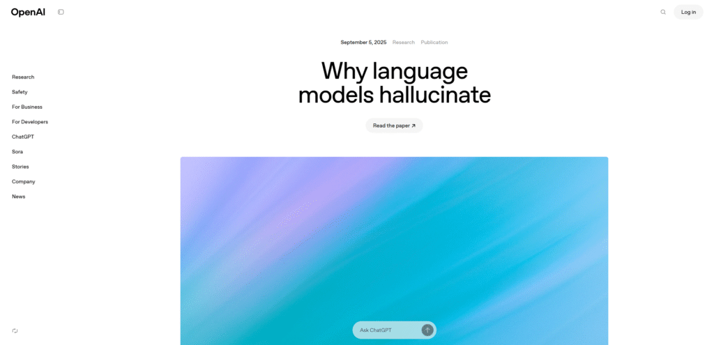 2025年9月、OpenAIは「Why Language Models Hallucinate(なぜ言語モデルはハルシネーションを起こすのか)」という注目の研究論文を発表しました。これは、AIがなぜ誤情報を生成してしまうのか、その仕組みを科学的に解明しようとした初の本格的な取り組みの一つです。