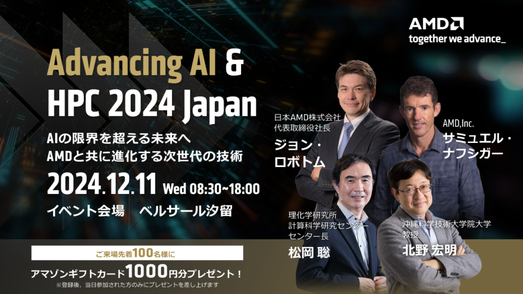 弊社は、2024年12月11日にベルサール汐留で開催するAMD主催「Advance AI & HPC 2024 Japan」に出展いたします。